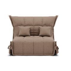Маленький прямой диван-кровать без подлокотников, с декоративными подушками в комплекте.